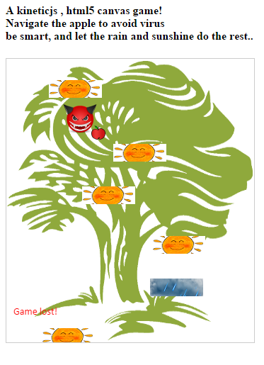 All game management (detections, status etc) runs in one single Kinetic.Animation loop , except the plant disease which has its own proper animation loop.